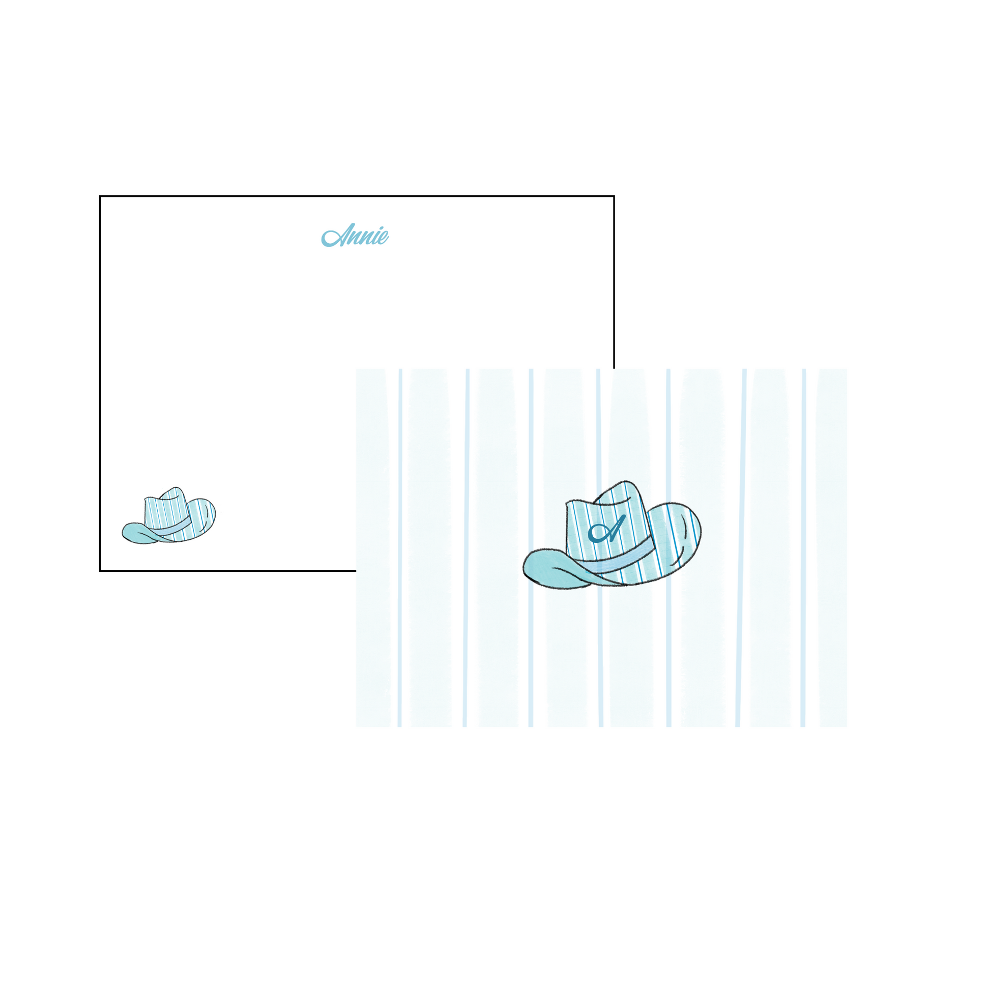 Cowgirl Hat Personalized Western Stationery - Blue and Teal Stripes