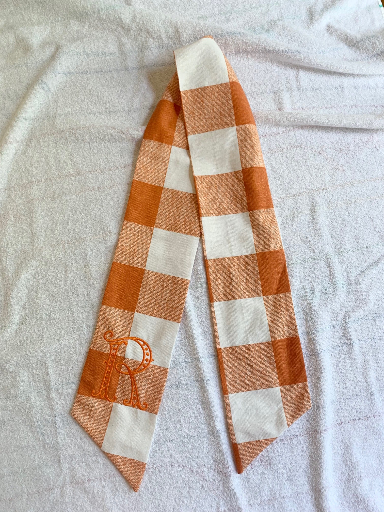 Orange Buffalo Plaid Monogram Embroidered Wreath Sash
